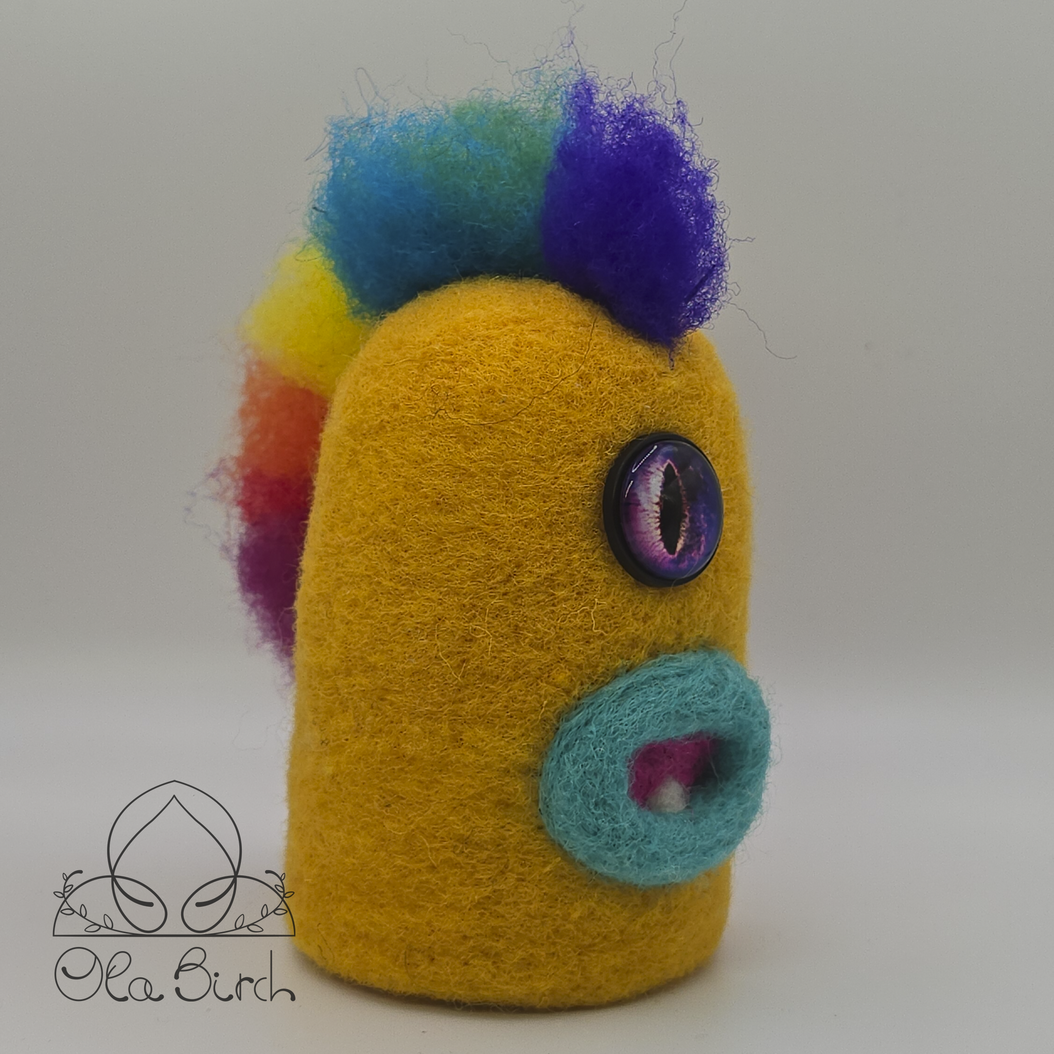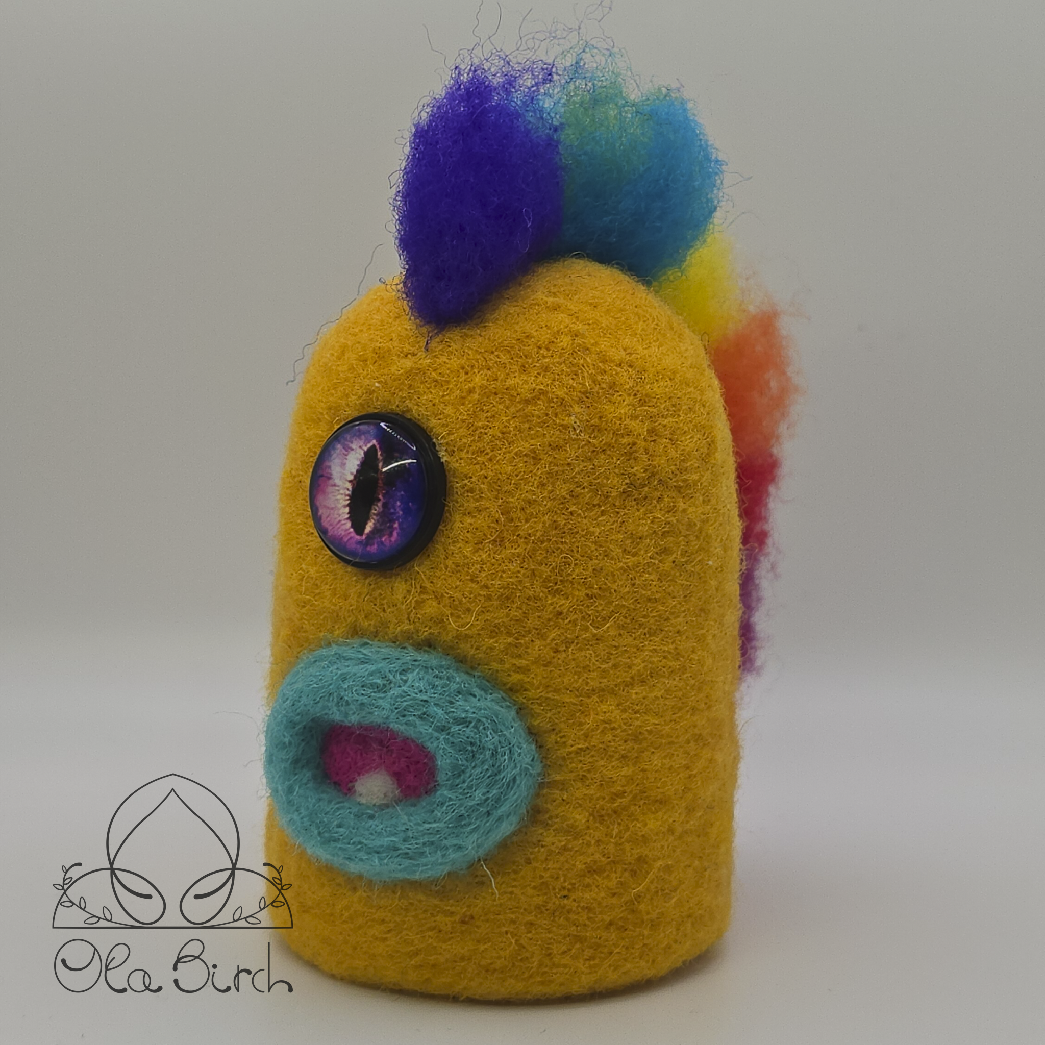 Meet Sunny Pete, the Moody equivalent of a good playlist on shuffle. He’s bright, bold, and impossible to ignore. Needle-felted by hand, this little guy is a true original. No copies, no reruns, just one burst of color.